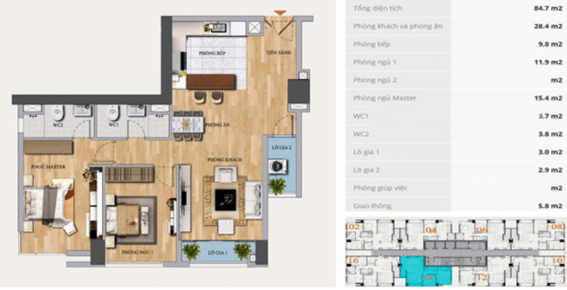 | Hai Phòng Ngủ | 83 – 87m2 | Tải bảng giá |