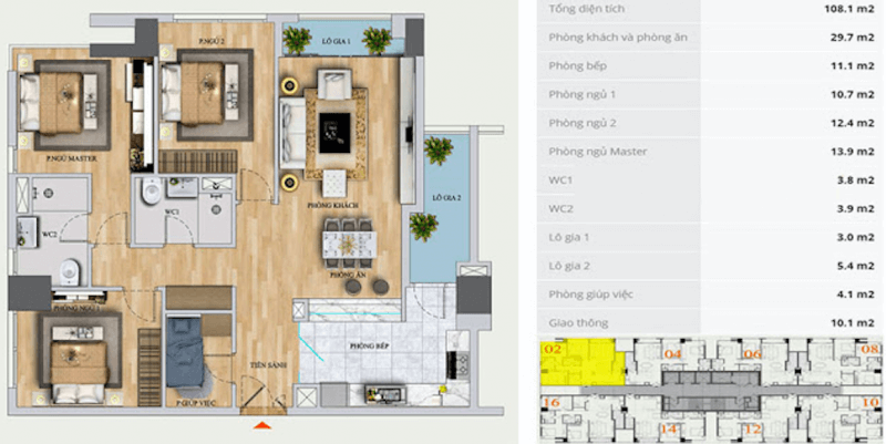 | Ba Phòng Ngủ | 106.2m2 | Tải bảng giá |